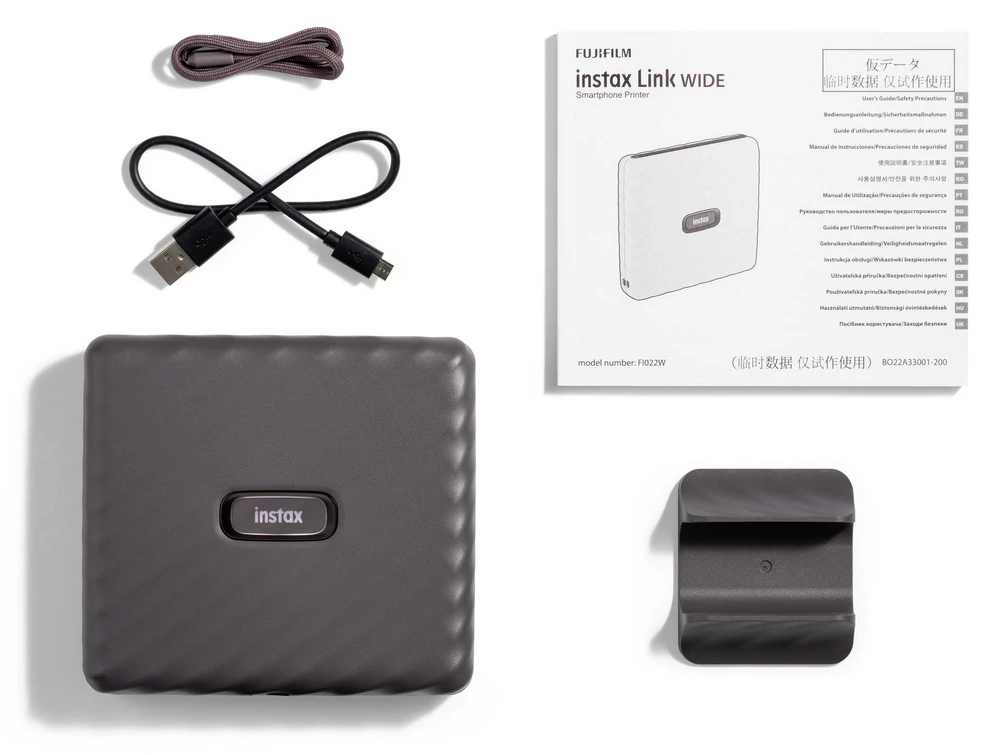 Tiskárna pro tisk instantních fotografiích • podporovaná velikost fotky: 800 x 1260 pixelů • konektivita: Bluetooth 4.2 • podporované formáty: JPEG, PNG, HEIF, DNG • doba tisku: cca 12 sekund • film: FUJIFILM Instax WIDE • tisk: barevný • rozměry: 139 mm x 127,5 mm x 33,7 mm • hmotnost: 340g (bez náplně) • aplikace Link WIDE (Android a iOS)