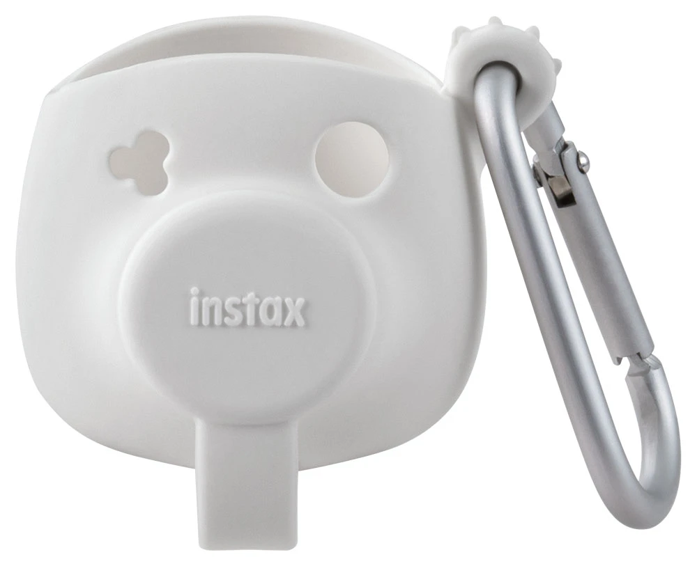 Designové silikonové pouzdro "INSTAX Pal" • Je ze silikonového materiálu, které se hodí k tělu fotoaparátu "INSTAX Pal" a je dodáváno s karabinou • Pomocí silikonového pouzdra můžete fotoaparát zavěsit na svojitašku jako klíčenku a nosit ho stále u sebe • Barva: Bílá
