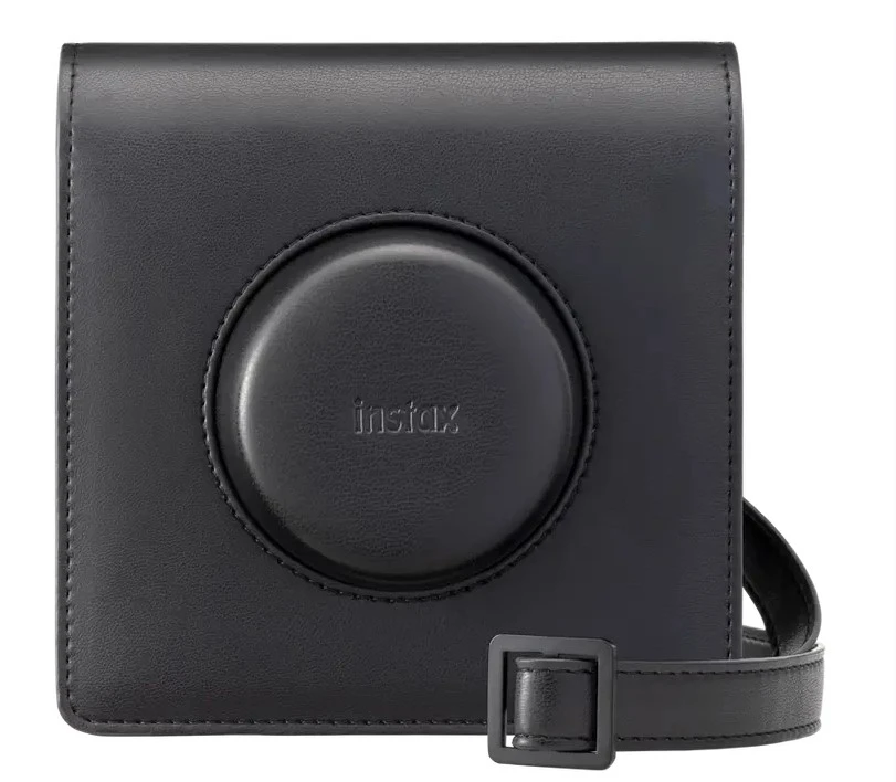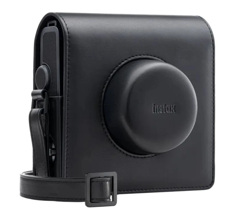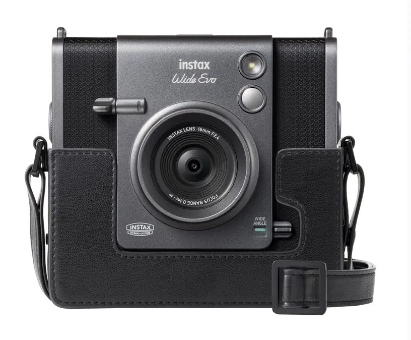 Stylové ochranné pouzdro pro Instax WIDE Evo kombinuje prvotřídní design s praktickou ochranou • Je vyrobeno z prémiové umělé kůže, má nastavitelný ramenní popruh a odnímatelnou horní část, která chrání fotoaparát i během focení • Pouzdro je navrženo tak, aby bylo možné používat fotoaparát přímo v něm, bez nutnosti vyjímání • Chrání před nárazy, prachem a poškrábáním
