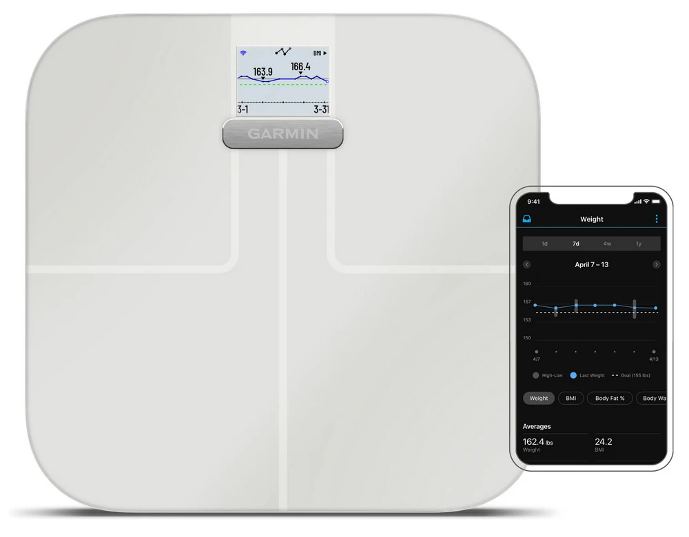 Chytrá váha s Wi-Fi • rychlý a intuitivní přenos dat do aplikace Garmin Connect a osobního deníku • komplexní měření tělesných parametrů – hmotnosti, podílu tuku, svalů a vody, BMI, kostní hmoty & kosterní svalové hmoty • sledování hmotnostního trendu • až 16 uživatelských profilů – automatické rozpoznávání • možnost opakovaného vážení během dne • předpověď počasí • prémiový design • napájení: 4× mikrotužkové (AAA) baterie – výdrž až 9 měsíců • barva: bílá