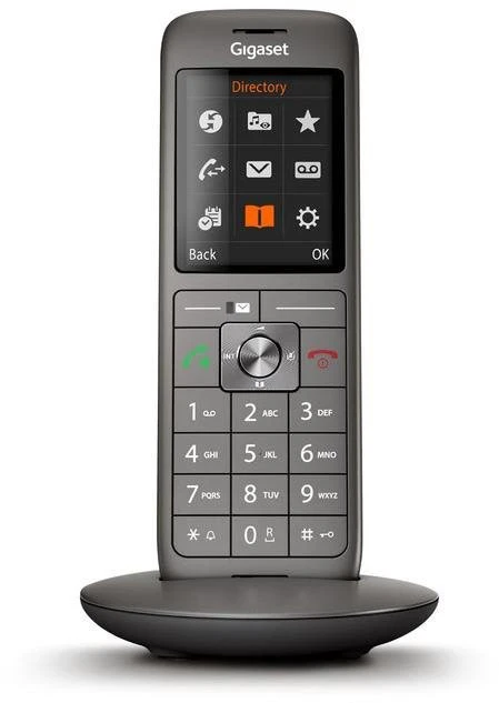 Univerzální sluchátko k použití s DECT základnami Gigaset, DECT/GAP telefonnímii základnam/routery jinýchvýrobců a routery s DECT CAT-iq 2.0/2.1. 2,4" TFT displej, až 400 kontaktů vCard, HD Voice, tenký design, microUSB pro PC a 2,5mm jack pro HF