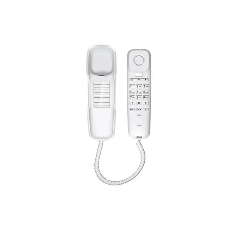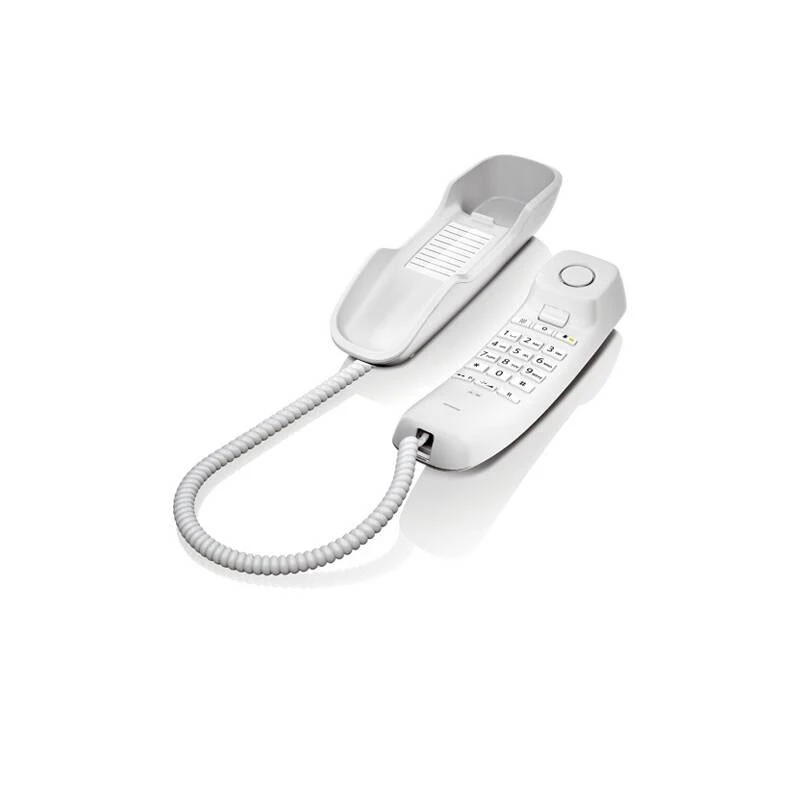 Gigaset DA210 je stolní telefon, který vám svým malým rozměrem ušetří místo. Telefon je vybaven LED diodou pro vizuální ohlášení příchozího hovoru. Lze využít funkce jako zpětné volání, rychlé vytáčení, tlačítko ztlumení. Možnost připevnění na stěnu.