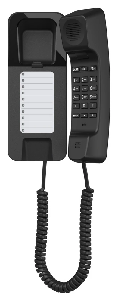 Analogový šňůrový telefon s klávesnicí na sluchátku • Ideální pro montáž na stěnu, úspora místa díky úzké konstrukci • LED signalizace volání • 10 pamětí pro rychlou volbu • 3 vyzváněcí tóny ve 3 úrovních hlasitosti • 2 úrovně hlasitosti sluchátka • DTMF/pulzní volba • Možnost přepojení hovorů (při provozu na telefonní ústředně), nastavitelná délka Flash • Podpora HAC (kompatibilní se sluchadly) • Barva černá
