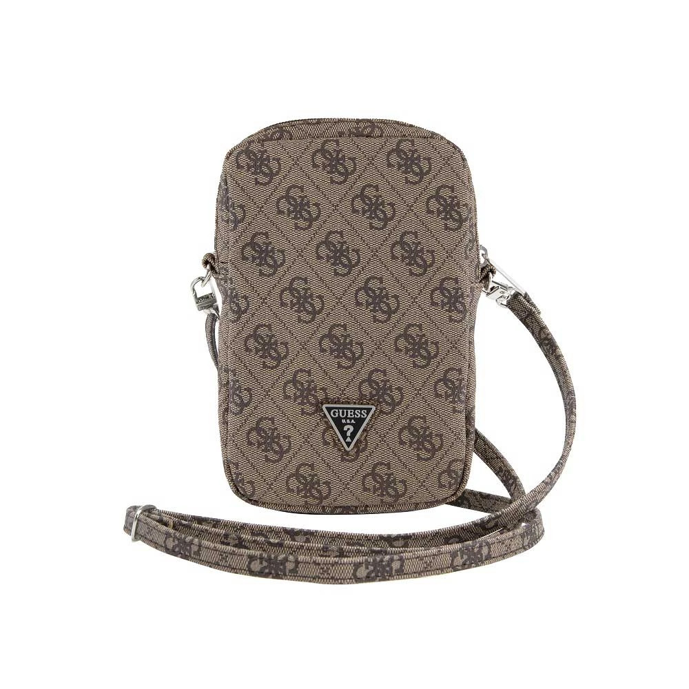 Guess PU 4G Triangle Logo Phone Bag Zipper, Brown