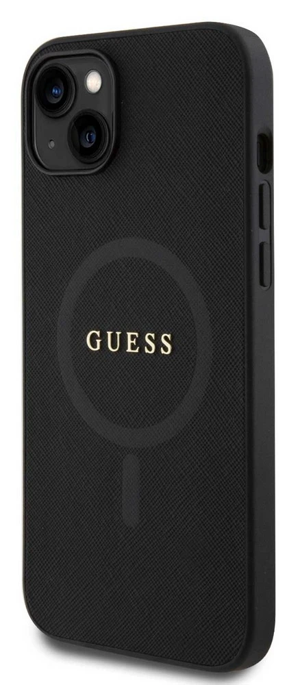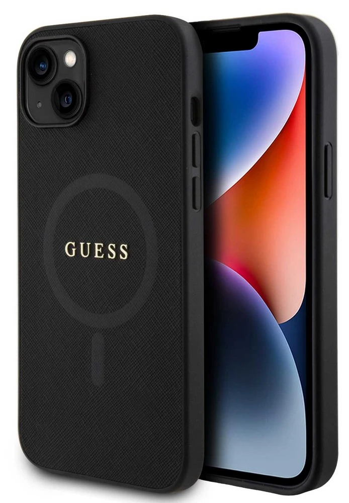 Guess Saffiano MagSafe kryt iPhone 15, Black
