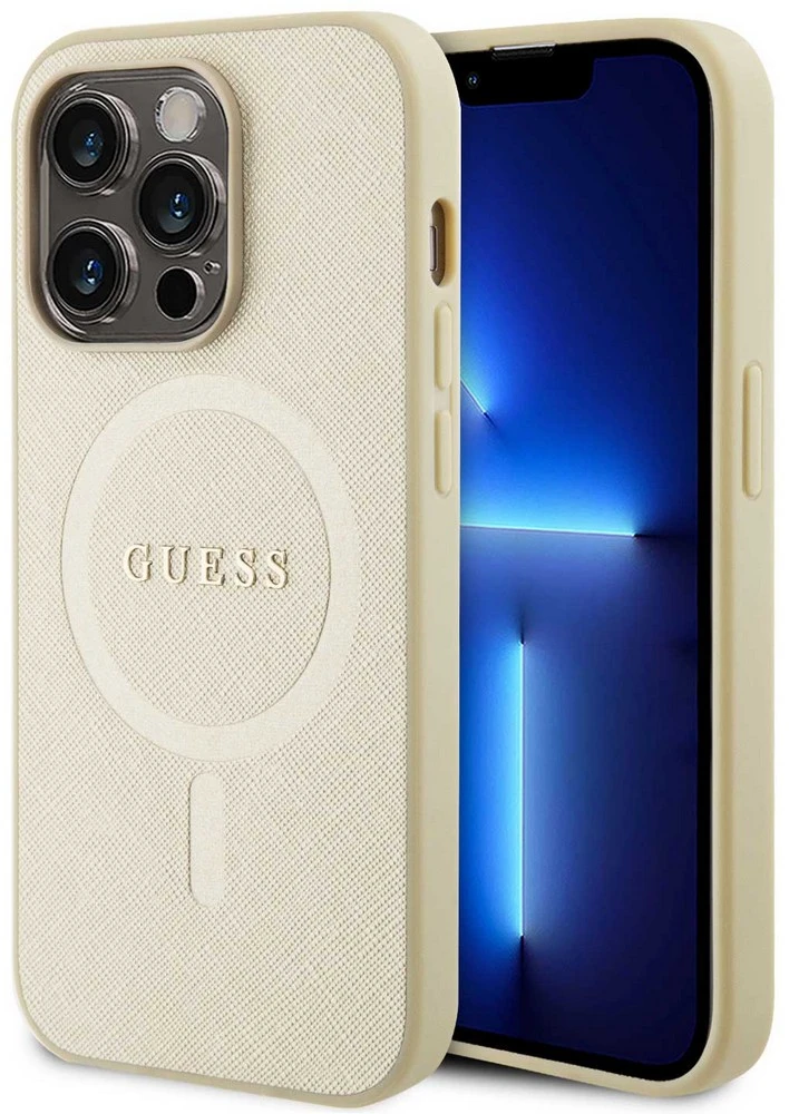 Guess Saffiano MagSafe kryt iPhone 15 Pro Max,Beig