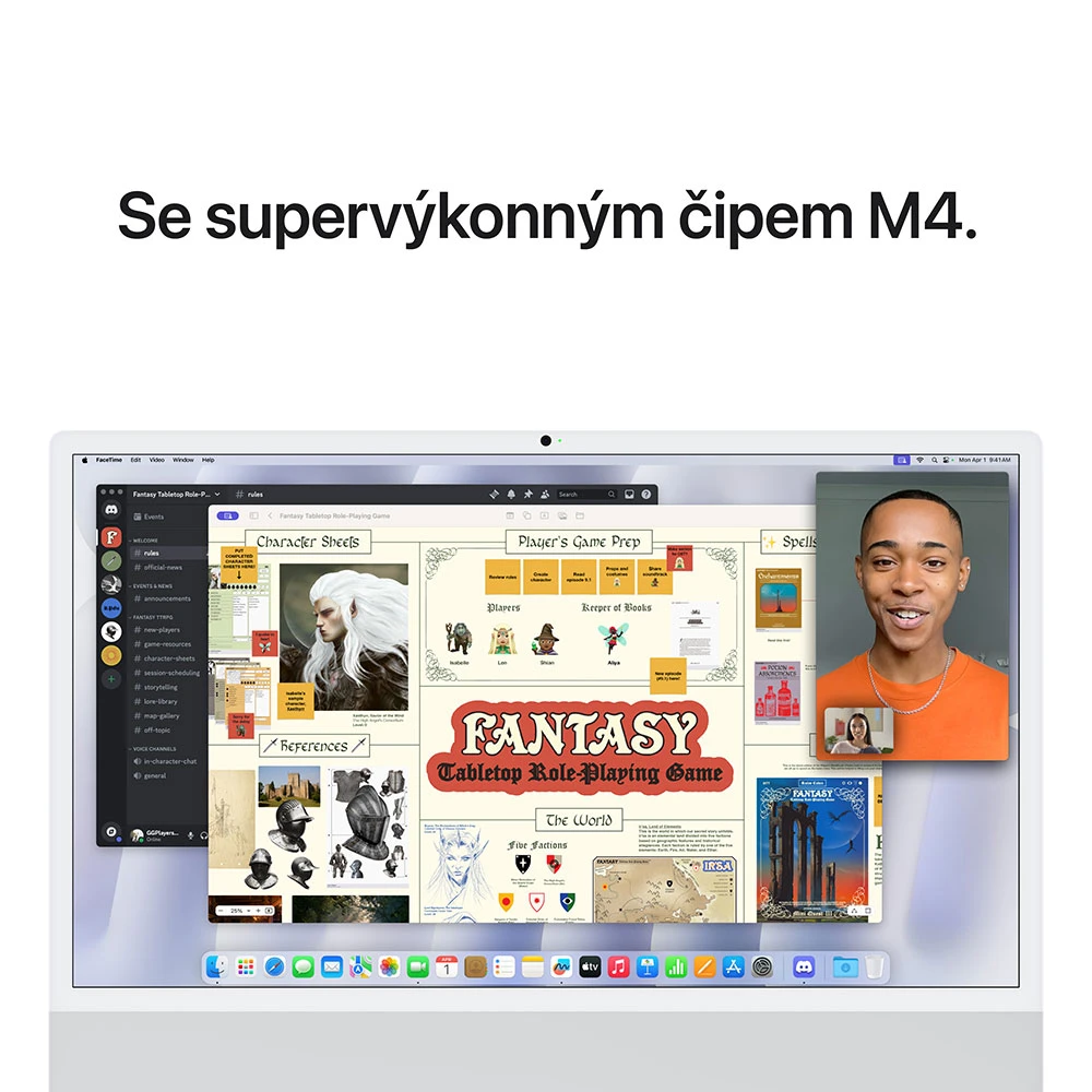 iMac 2024 • 24palcový Retina 4,5K displej (4 480 × 2 520 px, 500 nitů, široký barevný rozsah P3, True Tone) • čip Apple M4 – 10jádrové CPU, 10jádrové GPU & 16jádrový Neural Engine • 16GB RAM • 512GB SSD úložiště • Hi‑fi zvuková soustava šesti reproduktorů • tři mikrofony • Magic Keyboard s Touch ID • Magic Mouse • 12Mpx Center Stage kamera • Wi‑Fi 6E • Bluetooth 5.3 • 4× Thunderbolt 4/USB 4 • 3,5mm sluchátkový konektor • gigabitový ethernet • macOS Sequoia • barva: stříbrná