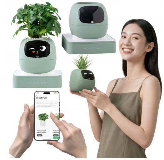 Inteligentní květináč • sleduje stav rostliny pomocí až 7 senzorů (vlhkost půdy, teplota, světlo, hladina vody) • interaktivní displej se zobrazením emocí a více než 70 výrazů pro signalizaci potřeb rostliny • reaguje na dotyk a gesta (až 5 typů interakcí) • upozornění na zálivku a nevhodné podmínky • propojení s mobilní aplikací pro individuální péči o konkrétní typ rostliny • doporučení pěstování a tipy • napájení: baterie/USB-C • design vhodný do interiéru • silikonová protiskluzová základna