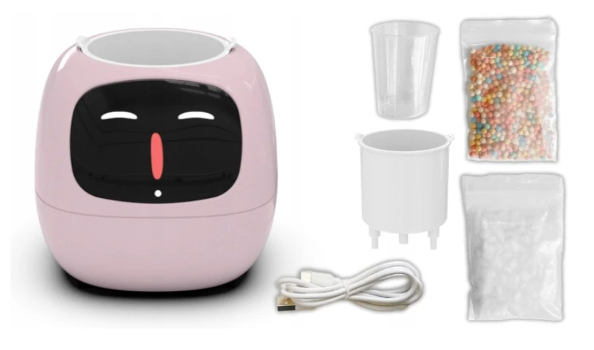 Inteligentní květináč • sleduje stav rostliny v reálném čase pomocí 9 senzory (vlhkost půdy, teplota, světlo, hladina vody, vlhkost vzduchu) • interaktivní displej se zobrazením emocí a více než 100 výrazů • upozornění na zálivku a nevhodné podmínky • propojení s mobilní aplikací Wi-Fi pro monitoring a statistiky • podpora více než 60 druhů rostlin s individuální péčí • technologie PlantSense 2.0 pro přesné vyhodnocení dat • dotykové ovládání a reakce na gesta • napájení USB-C, baterie