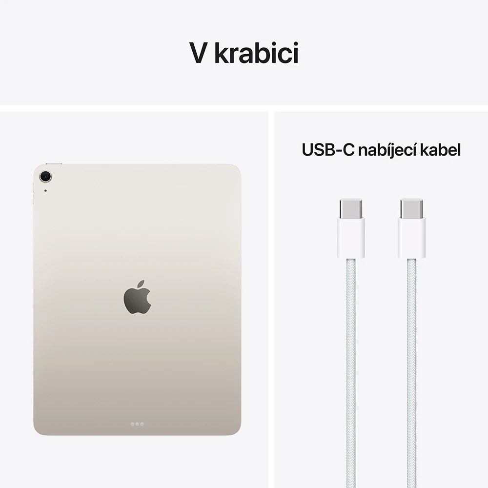 iPad Air 13" 2026 • 13" Liquid Retina displej s LED podsvícením (2 732 × 2 048 px, 600 nitů, True Tone, antireflexní) • čip Apple M4 – 8jádrové CPU, 9jádrové GPU & 16jádrový Neural Engine • 12GB RAM • 512GB úložiště • zadní 12MPx širokoúhlý fotoaparát (f/1,8) • přední 12MPx ultraširokoúhlá kamera (f/2,0) • stereo reproduktory • 2 mikrofony • Touch ID • Wi‑Fi 7 • Bluetooth 6.0 • USB‑C konektor • až 10 h sledování videí na jedno nabití • iPadOS 26 • barva: béžová