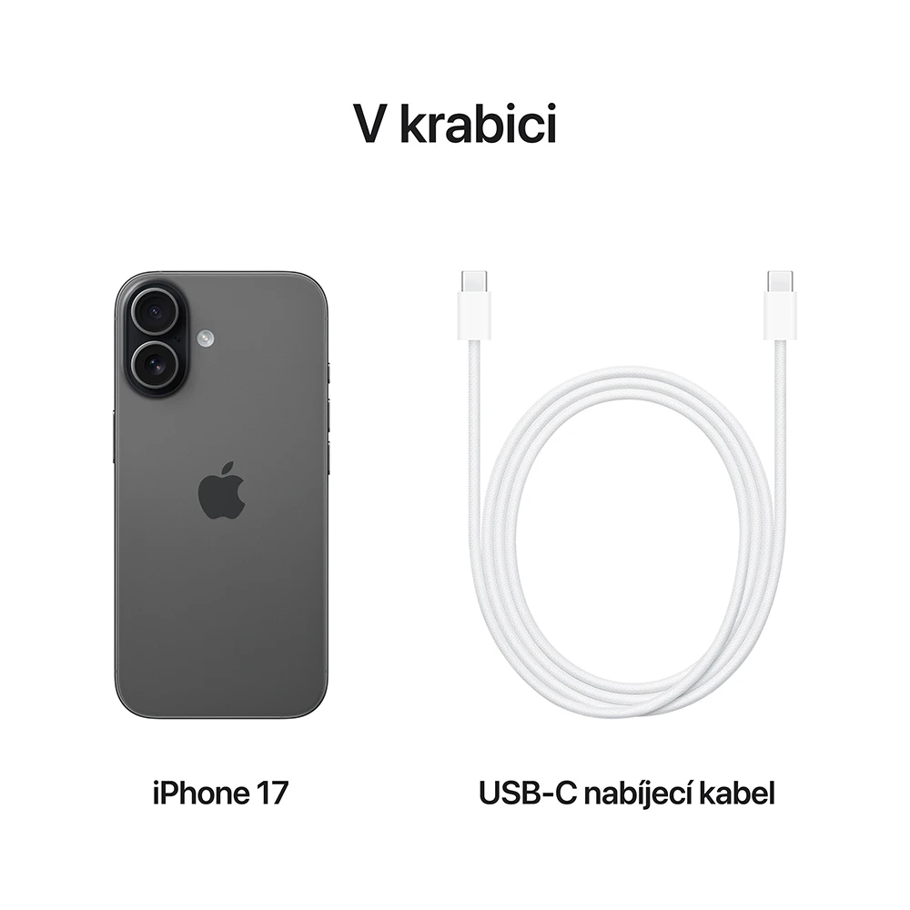 • iPhone 17 • USB‑C nabíjecí kabel (1m) • Dokumentace •