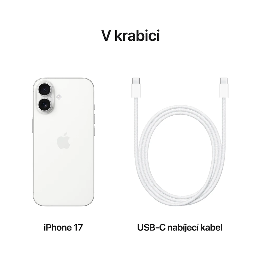 • iPhone 17 • USB‑C nabíjecí kabel (1m) • Dokumentace •