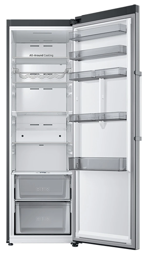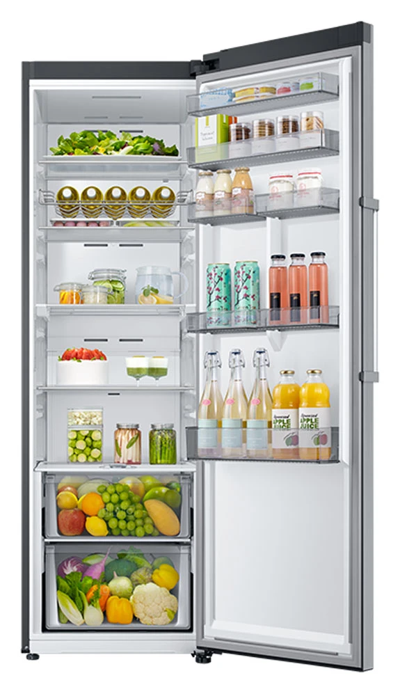 Monoklimatická lednice (bez mrazáku) v en. třídě E • objem 387 l • 20letá záruka na kompresor • True No Frost • All-around cooling chlazení • rychlá funkce Rapid Cooling • vestavěná Wi-Fi • Slide-in police • box Humidity Control • přizpůsobitelný zásobník ve dveřích • prvotřídní osvětlení Stage Lighting • designové řešení Cabinet Fit • klimatická třída: SN-T • hlučnost: 39 dB • barva: nerez • rozměry: 186 × 59,5 × 69,4 cm (v × š × h)