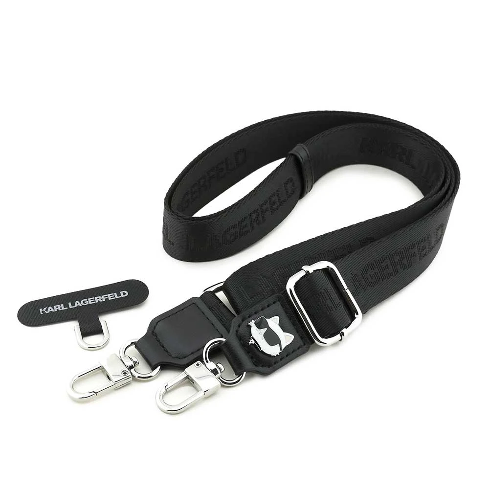 Originál Karl Lagerfeld s motivem Choupette • Crossbody popruh s odnímatelným a nastavitelným nylonovým tether patchem • Zdoben opakovaným logem Karl Lagerfeld • Praktické karabiny umožňují odepnout popruh bez sundání zadního krytu telefonu • Univerzální uchycení vhodné pro všechny značky chytrých telefonů • Nastavitelná délka popruhu až 150 cm pro pohodlné nošení přes rameno nebo kolem krku • Odolný a lehký nylon zajišťuje dlouhou životnost a komfort při používání