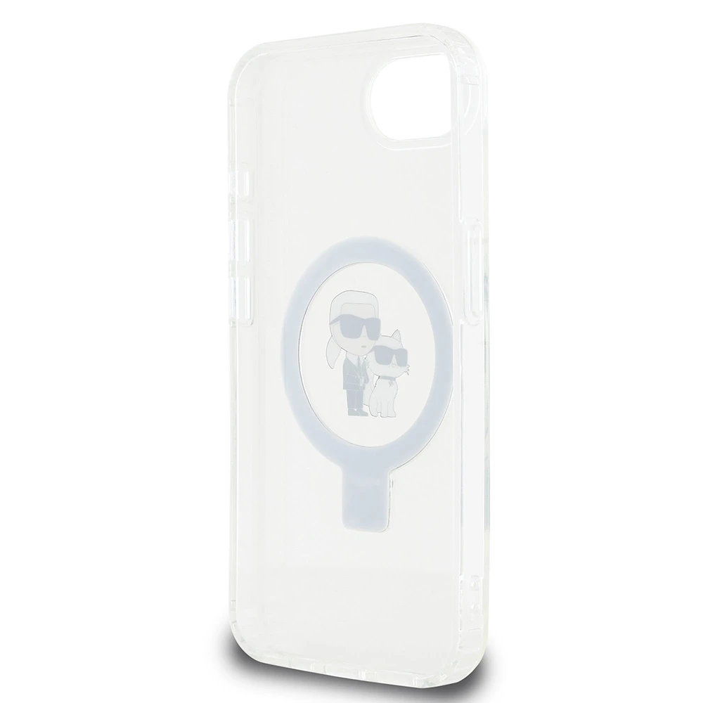 Karl Lagerfeld Ringstand Karl and Choupette MagSafe zadní kryt na telefon je skvělým doplňkem pro všechny milovníky stylu a praktičnosti • Tento kryt je vyroben z kombinace pevného PC plastu na zadní straně a TPU měkkého plastu na bocích, což vytváří dokonalou symbiózu odolnosti a pohodlí • Jeho pružný a měkký materiál se přizpůsobí tvaru vašeho telefonu a umožňuje snadný přístup ke všem tlačítkům a konektorům, zatímco textura krytu zajistí, že se skvěle drží v ruce a neklouže