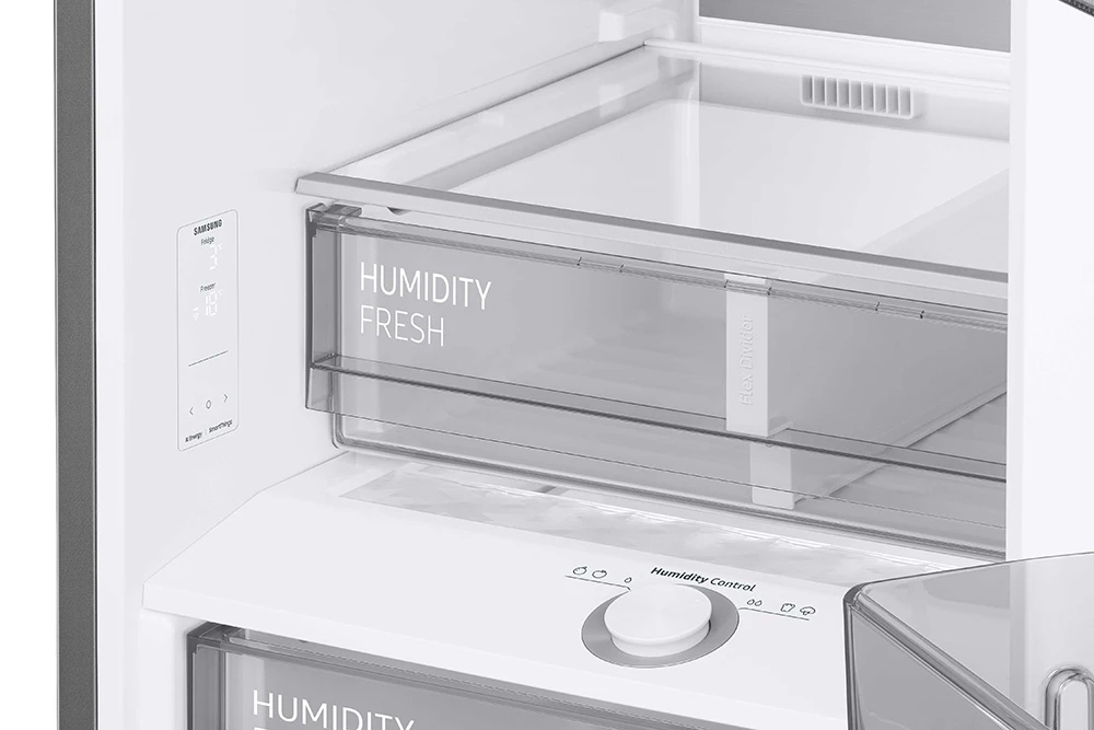 Kombinovaná chladnička • energetická třída A • objem 387 l (chladnička 273 l; mrazák 114 l) • úprava zadní stěny Metal Cooling Plate • řešení SpaceMax • technologie True No Frost • Twin Cooling • spotřeba energie 87 kWh/rok • 8kg/24h mrazící výkon • jen 29 dBA hlučnost • funkce rychlého chlazení a mrazení • Wifi • aplikace Samsung SmartThings