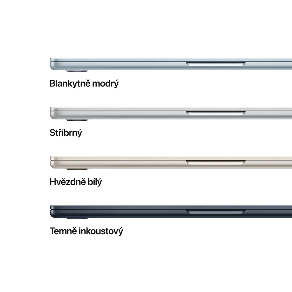 MacBook Air 15 2026 • 15,3" IPS Liquid Retina displej s LED podsvícením (2 880 × 1 864 px, 500 nitů) • technologie True Tone • široký barevný rozsah P3 • čip Apple M5 (10jádrové CPU, 10jádrové GPU, 16jádrový Neural Engine) • 16GB RAM • 512GB SSD úložiště • 6 reproduktorů • 3 mikrofony • podsvícená Magic Keyboard • Touch ID • 12Mpx Center Stage kamera • Wi-Fi 7 • Bluetooth 6.0 • MagSafe 3 • 2 porty Thunderbolt / USB 4 • 3.5mm konektor • až 18h výdrž na baterii • barva: béžová
