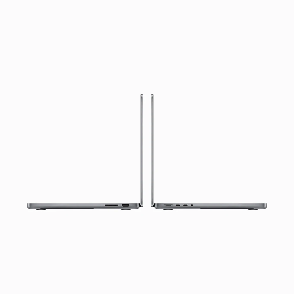 MacBook Pro • 14,2" Liquid Retina XDR displej (3 024 × 1 964 px, až 1 600 nitů, P3, ProMotion – až 120 Hz) • čip Apple M3 – 8jádrové CPU, 10jádrové GPU & 16jádrový Neural Engine • 16GB RAM • 512GB SSD úložiště • Hi‑fi zvuková soustava šesti reproduktorů • tři mikrofony • podsvícená Magic Keyboard • Touch ID • FaceTime HD 1080p kamera • Wi‑Fi 6E • Bluetooth 5.3 • 2× Thunderbolt/USB 4 • USB-C • SDXC slot • HDMI • 3,5mm konektor • MagSafe 3 • macOS • až 22h výdrž na baterii • barva: vesmírně šedá