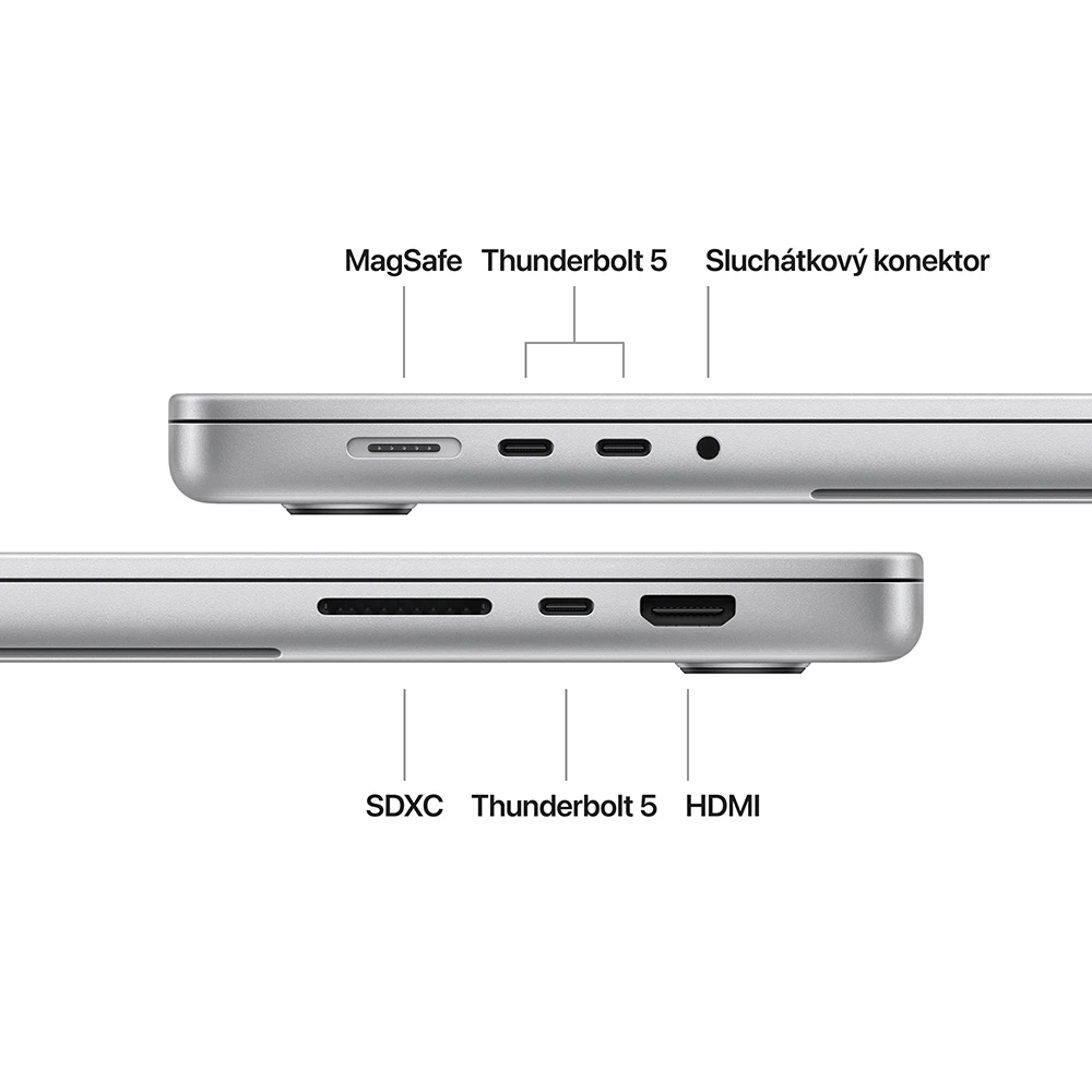MacBook Pro 2024 • 16,2" Liquid Retina XDR displej (3 456 × 2 234 px,až 1 600 nitů,P3, ProMotion – až 120 Hz) •čip Apple M4 Max – 14jádr. CPU, 32jádr. GPU & 16jádr. Neural Engine • 36GB RAM • 1TB SSD úložiště •Hi‑fi zvuková soustava šesti reproduktorů • 3 mikrofony •podsvícená Magic Keyboard • Touch ID •12Mpx Center Stage kamera • Wi‑Fi 6E •Bluetooth 5.3 • 3× Thunderbolt 5 (USB-C)/USB 4 • SDXC slot • HDMI • 3,5mm konektor •MagSafe 3 • macOS Sequoia •až 21h výdrž na bat. • barva: stříbrná