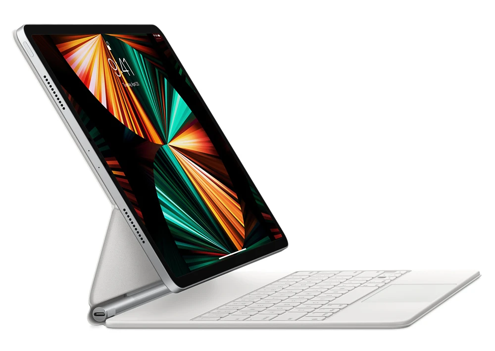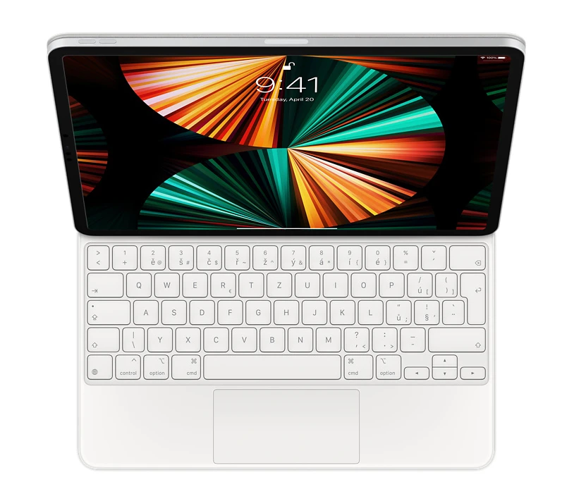 Magic Keyboard pro tablety Apple • 12,9"palcový iPad Pro (1., 2. a 3. generace) • pohodlné psaní • nůžkový mechanismus • zdvih kláves 1 mm • podsvícení pro psaní v noci • integrovaný trackpad (gesta Multi-touch) • polohovací konstrukce • funguje jako kryt • konektor USB-C pro nabíjení • magnetické přichycení iPadu • barva: bílá