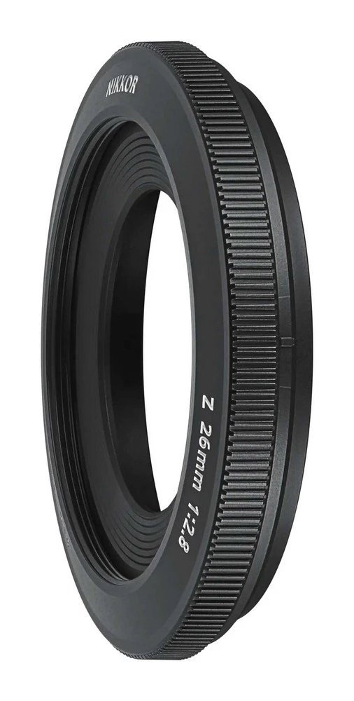 Jednodílná sluneční clona navržená speciálně pro použití s plochým objektivem NIKKOR Z 26mm F/2,8 • Pomáhá chránit přední optický člen objektivu a umožňuje použití filtrů o průměru 52 mm.