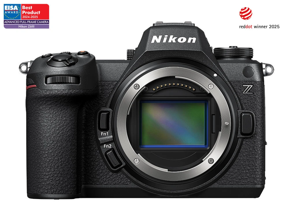 Nikon Z6III, nabíjecí baterie EN-EL15c, USB kabel, příchytka kabelu HDMI/USB, krytka patice, řemínek, krytka těla, gumová očnice