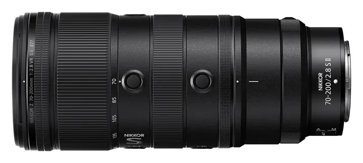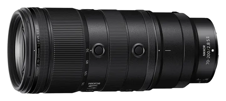 Profesionální teleobjektiv Nikon NIKKOR Z 70-200mm f/2.8 VR S(II generace) • bajonet Nikon Z(FX / full-frame) • ohnisková vzdálenost 70–200 mm • světelnost f/2.8 • optická stabilizace VR až 6 EV • AF systém se Silky Swift VCM motory • optická konstrukce s prvky Super ED, ED, asférickými a SR členy pro minimalizaci aberací • antireflexní vrstvy Meso Amorphous Coat a ARNEO • min. zaostřovací vzdálenost 0,38 m(wide)/0,8 m(tele) • max. zvětšení 0,3× • vnitřní zoom a ostření • průměr filtru 77 mm
