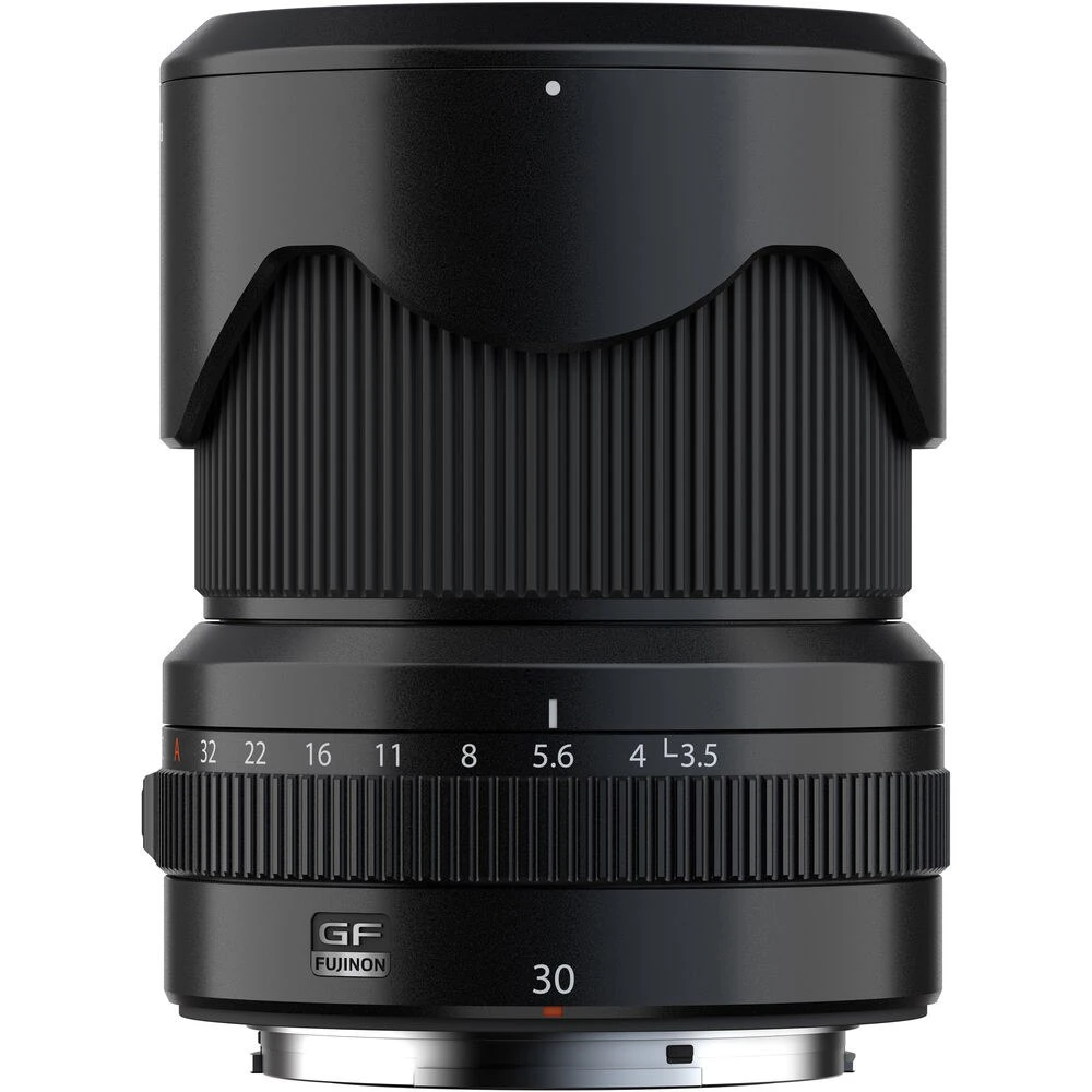 Objektiv Fujinon GF 30mm/F3,5 R WR • 24mm ohnisková vzdálenost • úhel záběru 84°• světelnost F3,5 • ostrost od okraje k okraji • irisova clona s 9 lamelami • minimální ostřící vzdálenost 32 cm • kompaktní a lehký design • 13 prvků v 10 skupinách • dva asférické prvky • dva prvky s nízkou disperzí • Focus breathing jen 0,05 % • odolnost proti prachu a vlhkosti • provoz až do -10°C