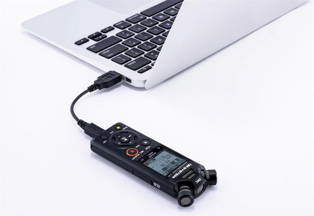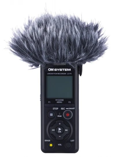 Součástí balení je ochrana proti větru, 3,5mm Jack propojovací kabel s fotoaparátem a redukce pro nasazení záznamníku do sáněk blesku fotoaparátu.