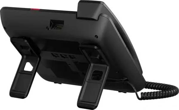 - Tiltable graphical display, 3,7" (240*120 pixel), monochrome - LED backlight (white) - Optical call alert and status LED - Keypad - 4 context sensitive feature keys with status LED - 2 fixed feature keys with status LED - 16 free programmable feature keys with status LED - 4-way navigator, plus OK-key - 3 audio keys (Mute/Speaker/Headset) with status LED - Volume control +/- - Open listening/Handsfree talking - Headset port - USB slave interface - Key Module 400 optional - Black