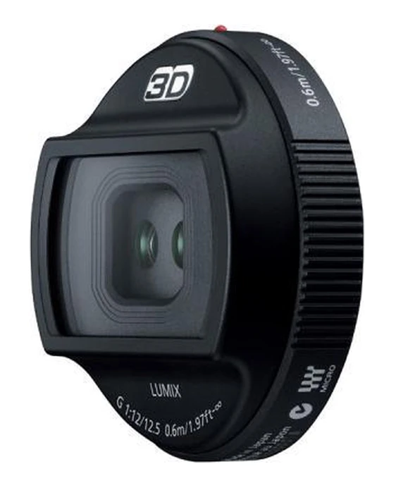 3D objektiv LUMIX G 12,5mm/F12. První 3D objektiv na světě pro fotoaparáty s výměnnými objektivy. Určeno pro bezzrcadlovky GH2 a G2.