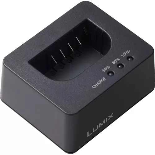 Panasonic nabíječka DMW-BTC15E pro baterii DMW-BLK22E • Nabíjecí pozice má LED indikátory stavu • Obsahem balení je AC adaptér s výstupním napětím 5 VDC při 1,8 A a kabel USB typ-C.