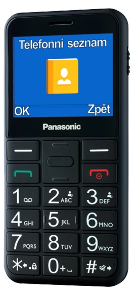 Seniorský telefon s velkými tlačítky, nabíjecím podstavcem, LED svítilnou a SOS tlačítkem. 2,4" displej, jednoduché ovládání. 0,3Mpx fotoaparát, Bluetooth, kompatibilní s naslouchátky TM3/M4, černý. V balení jsou sluchátka.