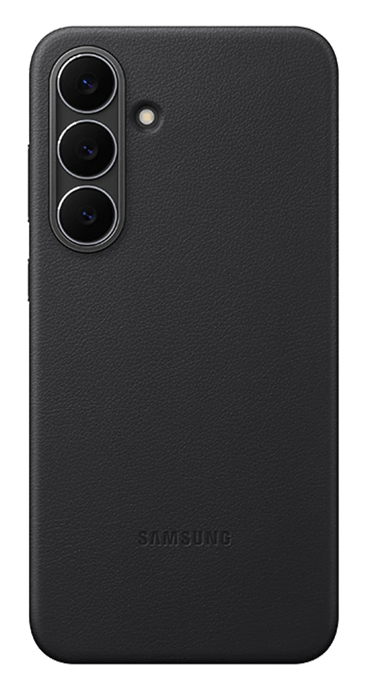 Originální ochranný kryt z veganské kůže pro Samsung Galaxy S25 FE • vnitřní podšívka krytu vylepší styl a navíc přispěje k dokonalému bezpečí telefonu i v těch nejnáročnějších podmínkách • pohodlně padne do ruky • příjemný materiál • snadná údržba • barva: černá