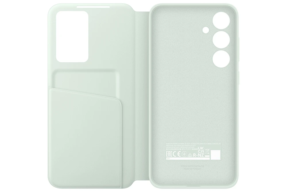 Flipové pouzdro Smart View pro Samsung Galaxy S24FE • Vyrobené z recyklovaných materiálů • Praktické okénko na přední straně krytu • Štíhlý profil krytu s příjemným úchopem • Hladký povrch se speciální antimikrobiální úpravou • Barva: zelená
