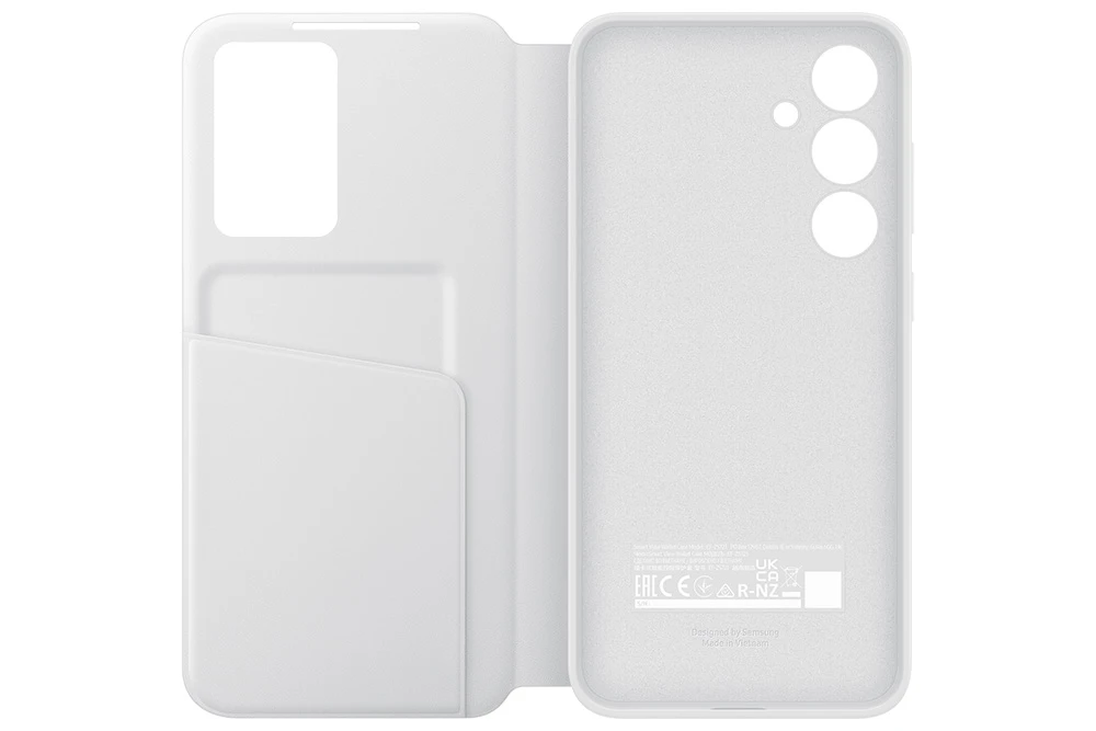 Flipové pouzdro Smart View pro Samsung Galaxy S24FE • Vyrobené z recyklovaných materiálů • Praktické okénko na přední straně krytu • Štíhlý profil krytu s příjemným úchopem • Hladký povrch se speciální antimikrobiální úpravou • Barva: bílá