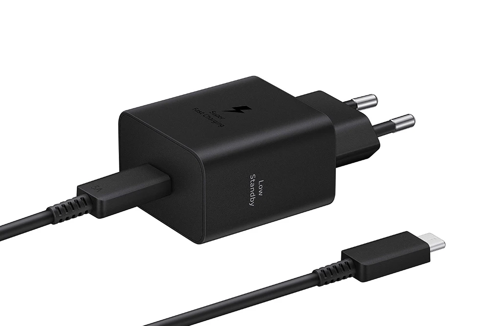 Originální Samsung cestovní rychlonabíječka do sítě s maximálním výkonem 45W • USB-C výstup • GaN technologie • Super Fast Charging 2.0, PD 3.0 PPS • Ochrana proti přebití, zkratu, přehřátí a přepólování • USB-C kabel dlouhý 1,8m v balení • Barva: černá