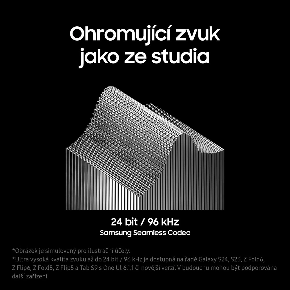 Prémiová TWS špuntová sluchátka • ergonomické tvarování • světelné indikátory • dvoupásmový reproduktor a duální zesilovač • 24bit rozlišení s vysokou kvalitou přenosu až 96 kHZ • pokročilé funkce Galaxy AI • technologie adaptivního potlačení hluku • režim Ambient • funkce Simultánní překlad skrz Galaxy AI a spárovaný Galaxy Smartphone • technologie 360 audio • aplikace Samsung Health a Calm • barva: bílá