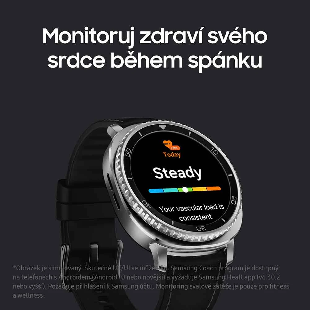 *Hodinky Galaxy Watch ti dávají dobrý přehled o mnoha zdravotních metrikách, ale v žádném případě nemají nahradit lékaře. Pokud se necítíš dobře nebo máš jakékoli pochybnosti o svém zdravotním stavu, požádej o radu odborníka. Měření jsou užitečná a zpravidla velmi přesná, ale prosíme, neměň na jejich základě v žádném případě způsob léčby, dávkování léků apod.