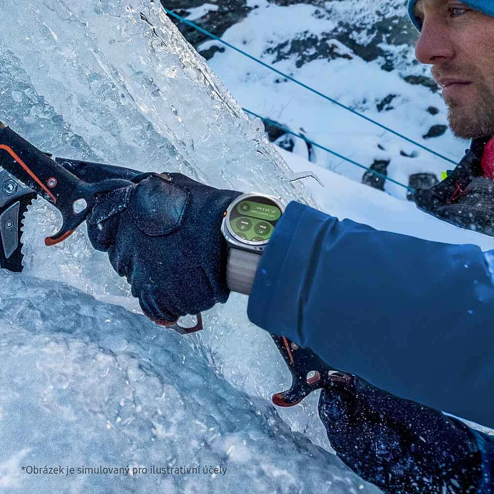 S úchvatnými Galaxy Watch Ultra (2025) můžeš klidně vyrazit do nepohody. Největší model Watch je z velké části vyrobený z titanu a nadchne výjimečnou odolností, kterou stvrzují stupně ochrany MIL-STD-810H, IP68 a také 10 ATM. S hodinkami se klidně na chvíli vydej až do stometrové hloubky, ale poradí si také s teplotami −20 až 55 °C, takže pokud neholduješ vodě, mohou tě doprovázet na velehoru nebo třeba do pouště. Dobrodruhy a cestovatele potěší také dvojité GPS, sportovci ocení možnost přepínat sporty Akčním tlačítkem (režim Multisport). Unikátní výbavu modelu Ultra představuje také hlasitá, 86dB bezpečnostní siréna, pomocí které můžete v případě nouze přivolat pomoc.