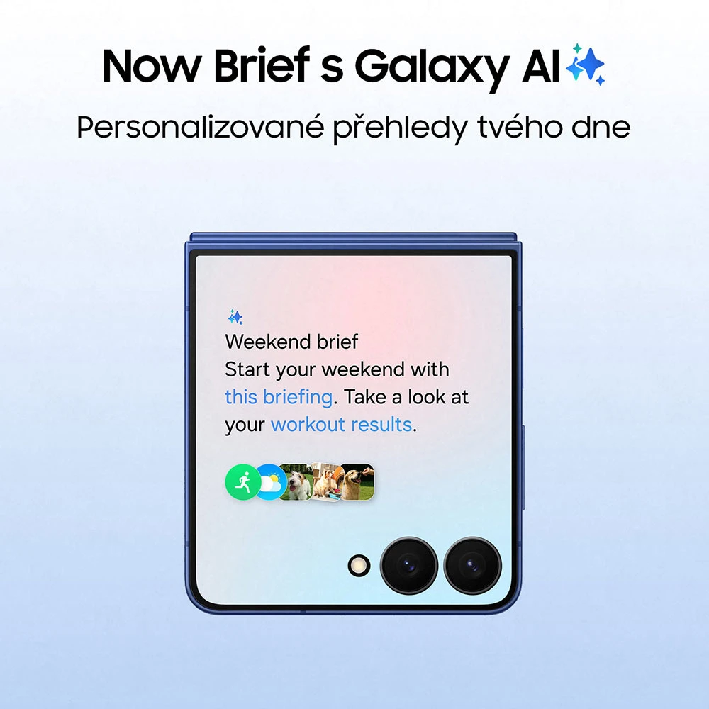 Galaxy Z Flip7 vstupuje na trh se zbrusu novým One UI 8, jež je založené na Androidu 16. Těšit se ale můžeš na 7 let oficiální softwarové podpory. Systém nadchne pokročilou umělou inteligencí Gemini Live, se kterou se dá snadno a efektivně komunikovat i přes vnější obrazovku – aniž by bylo potřeba telefon rozevřít. Oceníš i přehledy informací Now Bar a personalizovaná shrnutí Now Brief. Samozřejmě zůstávají také oblíbené funkce, jako je Vyhledávání zakroužkováním, kdy přes Google snadno vyhledáš cokoli, co právě vidíš na displeji.