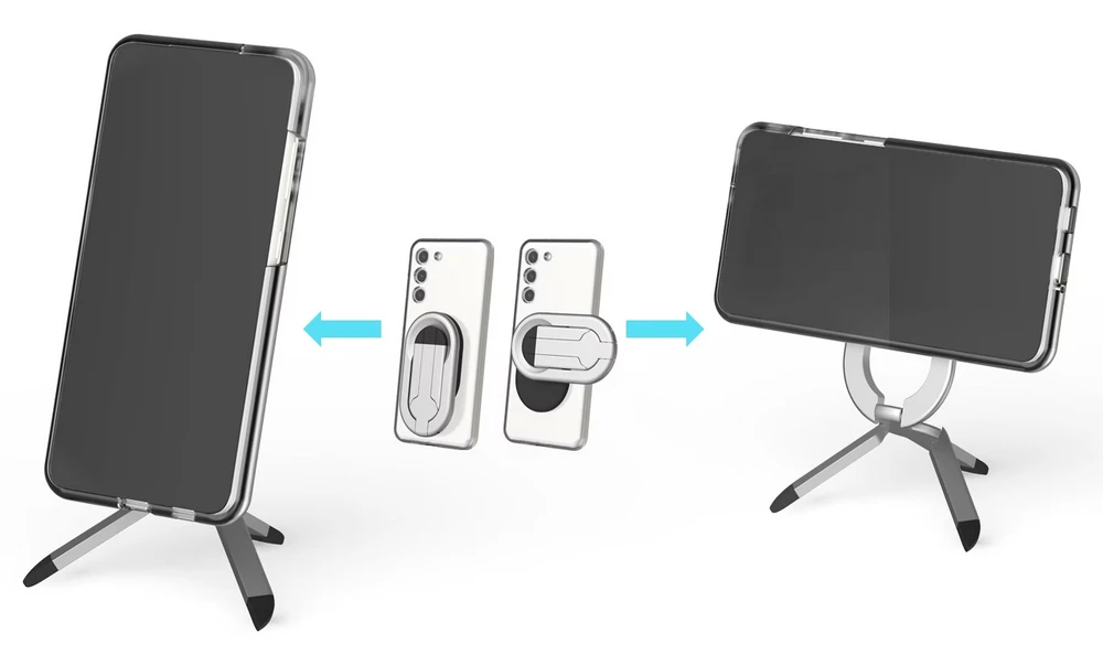 • Doplňkové příslušenství pro pouzdro Gadget Case pro vylepšení fotoaparátu a zážitku ze sledování pomocí skládacího mini stativu. • Snadno se používá jako mobilní stojánek kdykoli a kdekoli a jeho štíhlá funkce usnadňuje přenášení a snadné připojení a odpojení od krytu Gadget. • Snadno přepínejte mezi režimem na výšku a na šířku pomocí otočné konstrukce pantů. Úhel upevnění lze snadno upravit horizontálně a vertikálně pro natáčení videí s požadovanou kompozicí snímku.