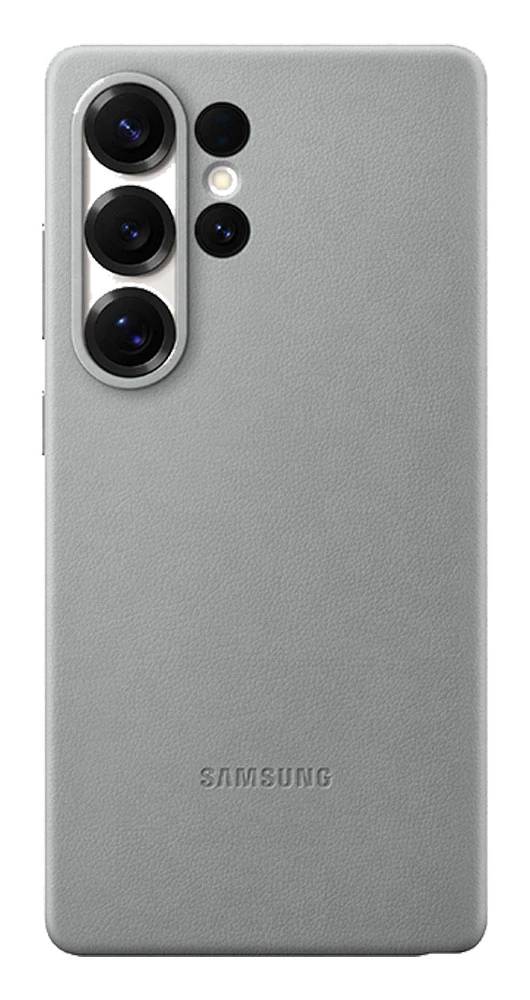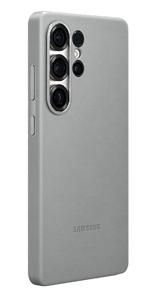 Originální ochranný kryt z veganské kůže pro Samsung Galaxy S25 Ultra • vnitřní podšívka krytu vylepší styl a navíc přispěje k dokonalému bezpečí telefonu i v těch nejnáročnějších podmínkách • pohodlně padne do ruky • příjemný materiál • snadná údržba • barva: šedá