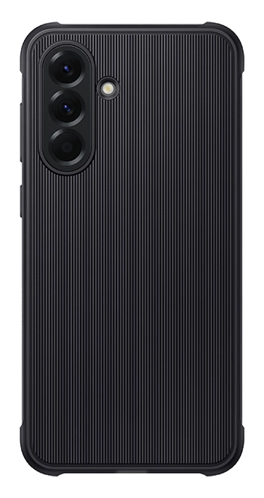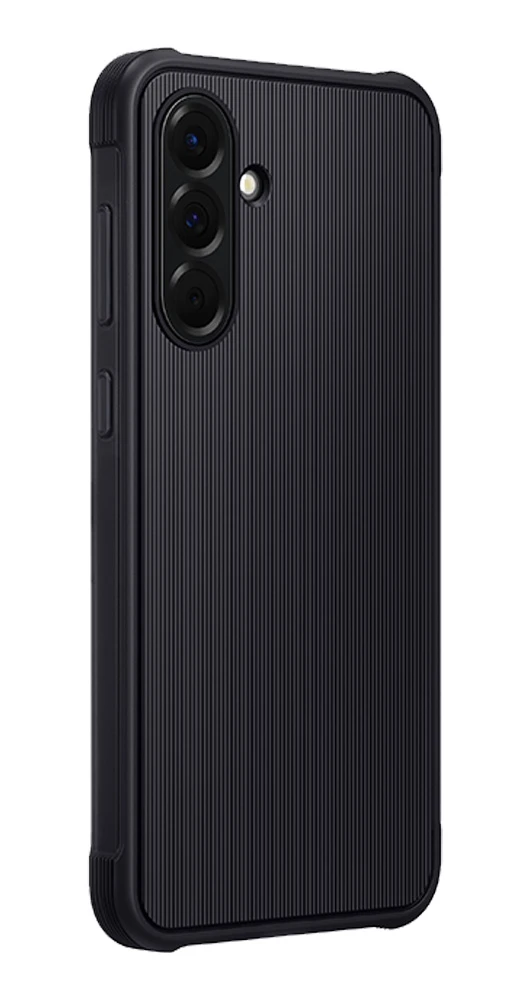 Originální tvrzený zadní kryt pro Samsung Galaxy A56 • maximální ochrana telefonu • design je přizpůsobený aby pohodlně padl do ruky • testováno podle norem MIL-STD-810H Transit Drop při pádu z výšky 1,2 metru na ocelový povrch • barva: průhledná s černým rámečkem