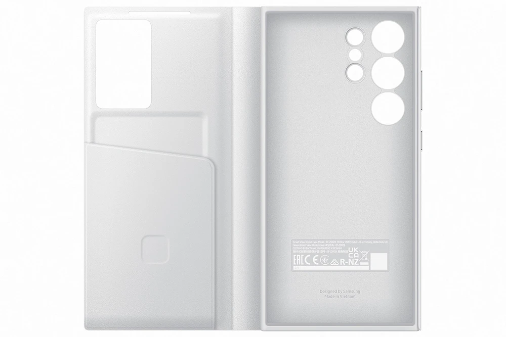 Flipové pouzdro Smart View pro Samsung Galaxy S24 Ultra • Vyrobené z recyklovaných materiálů • Praktické okénko na přední straně krytu • Štíhlý profil krytu s příjemným úchopem • Hladký povrch se speciální antimikrobiální úpravou • Barva: bílá