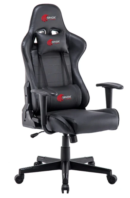 Herní židle z řady Sinox Gaming Chair • vysoká kvalita zpracování pro luxusní komfort, nejlepší zážitek ze hry i správné držení těla • loketní opěrky • bederní & zádová opěrka • materiál: syntetická kůže (PU) • maximální zatížení: 105 kg • výšková nastavitelnost: 47-57 cm • možnost naklonění o 20° • výška sedadla: 120-130 cm (opěradlo 67 cm) • šířka sedáku: 54 cm • hloubka sedáku: 50 cm • 100mm cylindrický systém plynového tlumiče • moderní design • barva: černá + červené prošití