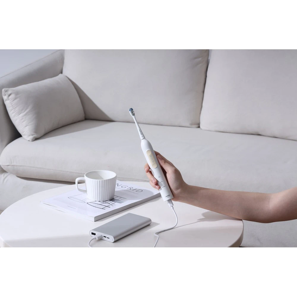 Sonický elektrický zubní kartáček • brilantní péče o citlivé dásně • až 38 000 ot./min • špičkové štětiny DuPont Tynex • 3 nastavitelné režimy – bělení zubů, standardní čištění nebo ultra senzitivní masáž dásní • technologie mikrobublinek • čištění povlaku jazyka • 3úrovňový LED displej • certifikace FDA • krytí IPX7 • tichý provoz • až 180denní výdrž na baterii (doba nabíjení 6 h) • barva: bílá