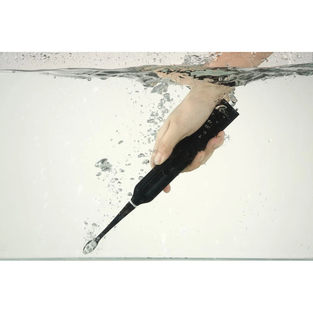 Sonický elektrický zubní kartáček • brilantní péče o ústní dutinu • až 38 000 vibrací/min • špičkové štětiny DuPont Tynex • 4 nastavitelné režimy – bělení zubů, standardní čištění, péče o citlivé dásně & čištění jazyka • 3 volitelné rychlosti • technologie mikrobublinek • velký 3úrovňový barevný LED displej • certifikace FDA • krytí IPX7 • tichý provoz • až 180denní výdrž na baterii (doba nabíjení 4 h) • luxusní design • barva: černá