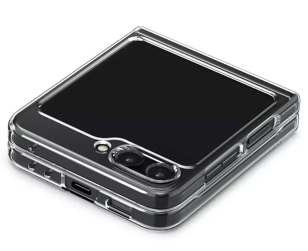 Lehké a pevné transparentní pouzdro na telefon Galaxy Z Flip5 • vyrobené z polykarbonátu • mírně zvýšené okraje krytu pro lepší ochranu • přesné výřezy nabízí plný přístup k fotoaparátu, senzorům a dalším funkcím zařízení • kompatibilní s bezdrátovým nabíjením •