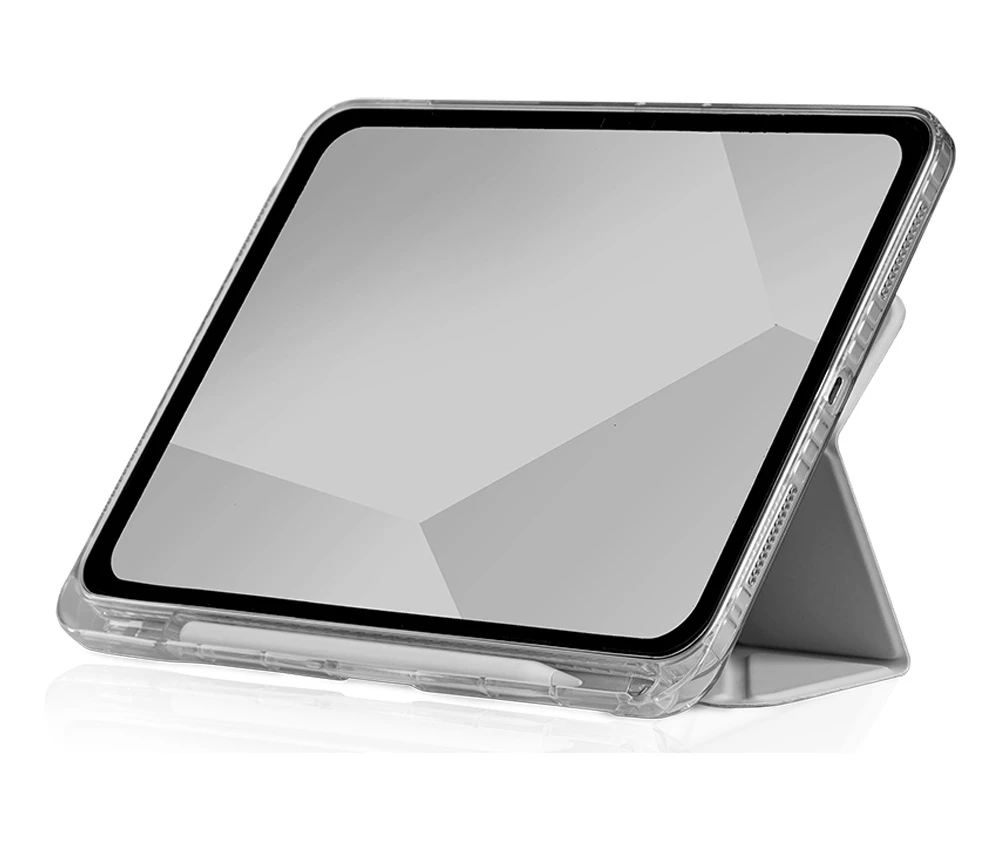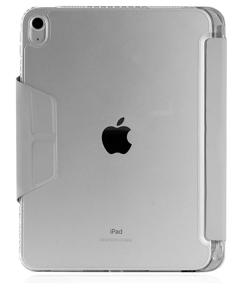 Ultra tenké ochranné pouzdro pro 10,9palcový iPad (10. generace) • důmyslný skládací kryt ve stylu origami, co ukrývá funkci vertikálního nebo horizontálního stojánku • brilantní rezistence vůči pádům, nárazům a poškrábání • transparentní, křišťálově čistá zadní strana nechávající vyniknout ikonický design iPadu • neomezený přístup ke všem portům a tlačítkům tabletu • integrovaný držák pro Apple Pencil • materiál: TPU, PC a PU • barva: šedá